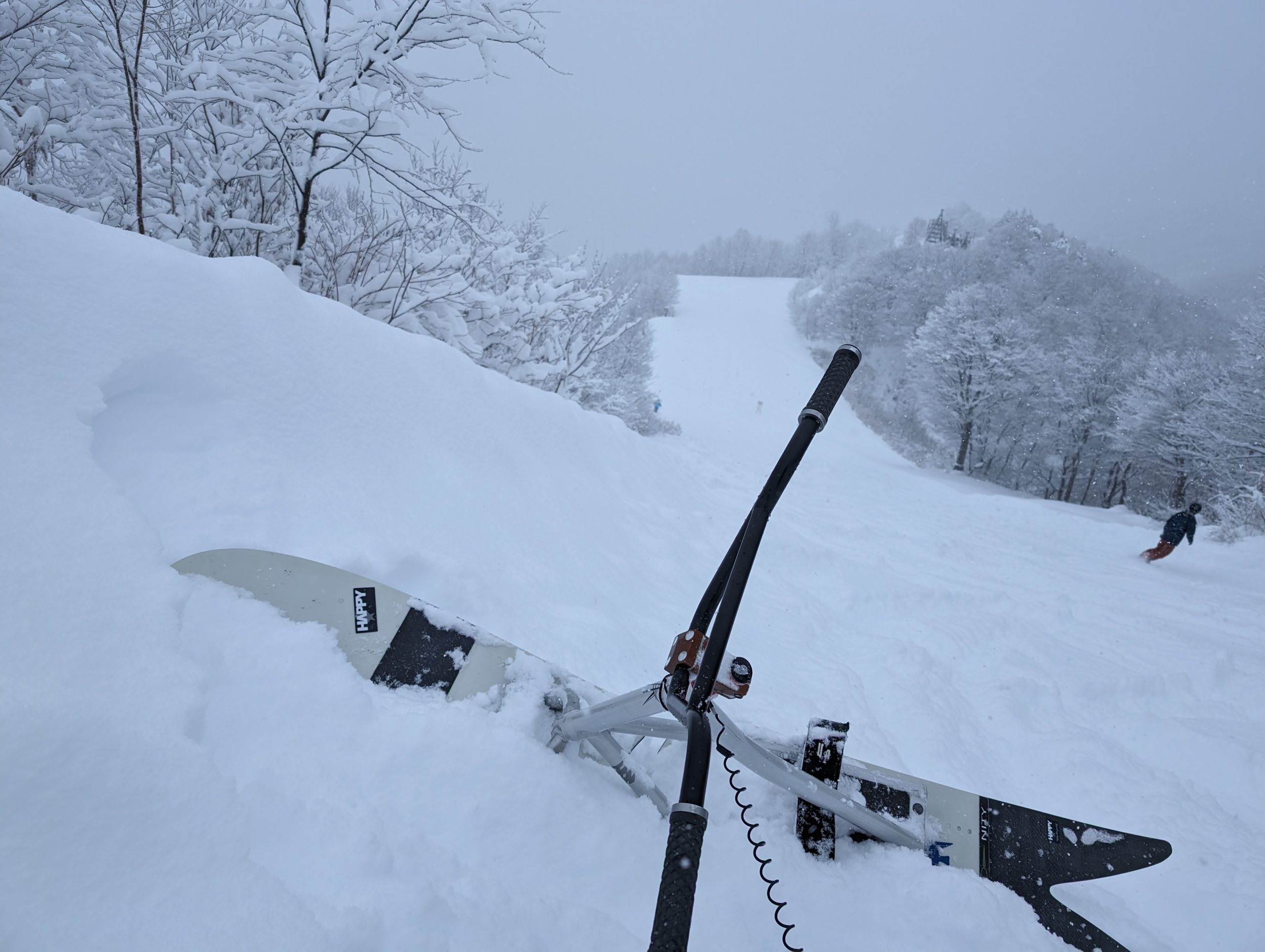 そしてTORINITY White Arrow boardですが、フロントの食いつきがとても良くなり、ホワイトアローマニアとしては、たまらない進化となり、パウダー系最強オールラウンダーとなりました。パウダーランでの自由度は私的には№1です。そして圧雪や地形遊びも私的には№1で、他のボードに興味なしになってしまいました。