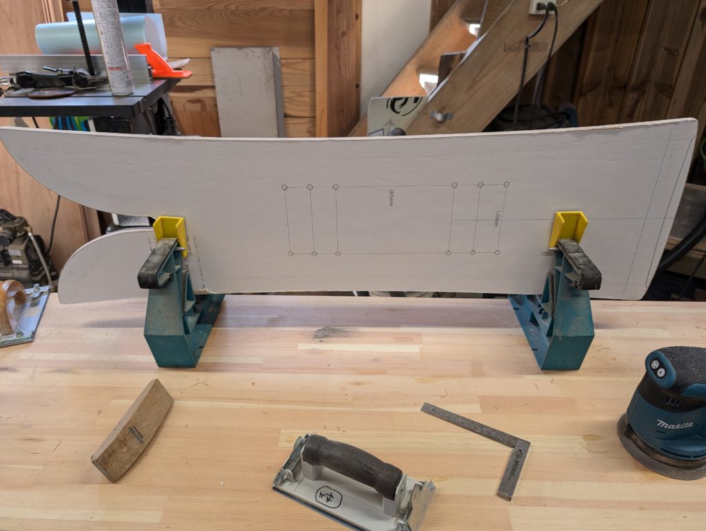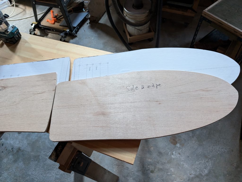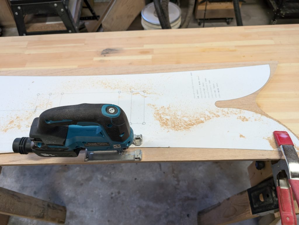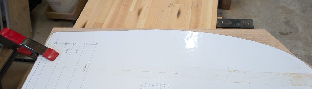 設計した図面をべニア板に移してくり抜きいてベースとなる板を作ります。